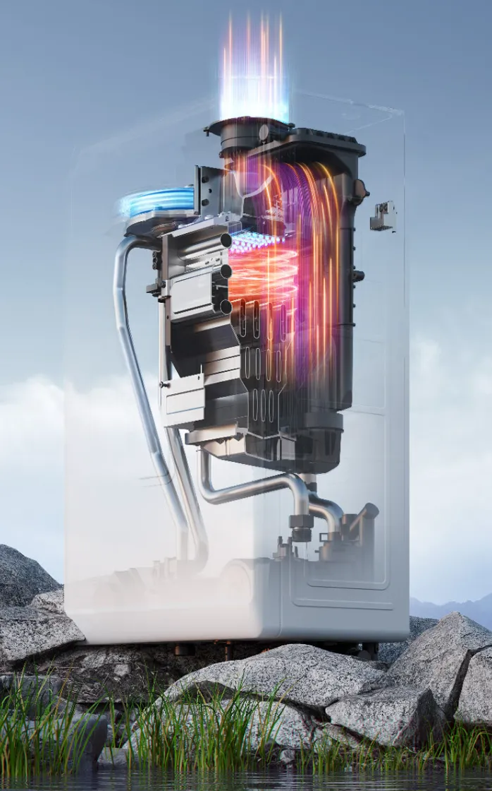 庆东纳碧安推出的混氢产品NCB300壁挂炉,可混合20%氢能源使用。它具备热效率高达107.9%的全预混冷凝一级能效,比普通壁挂炉最高可节省25.5%的燃气费用。采用了专利同向顺流冷凝技术(专利号:ZL202322435289.7)和自清洁功能,避免了冷凝水对设备的腐蚀,延长了机器的使用寿命。此外,壁挂炉配备了高效环保的金属纤维燃烧器,TDR高达8.7:1,使用寿命更长受热更均匀。其15.6L的超大水量,也实现了节能环保、长寿命和舒适的沐浴体验。